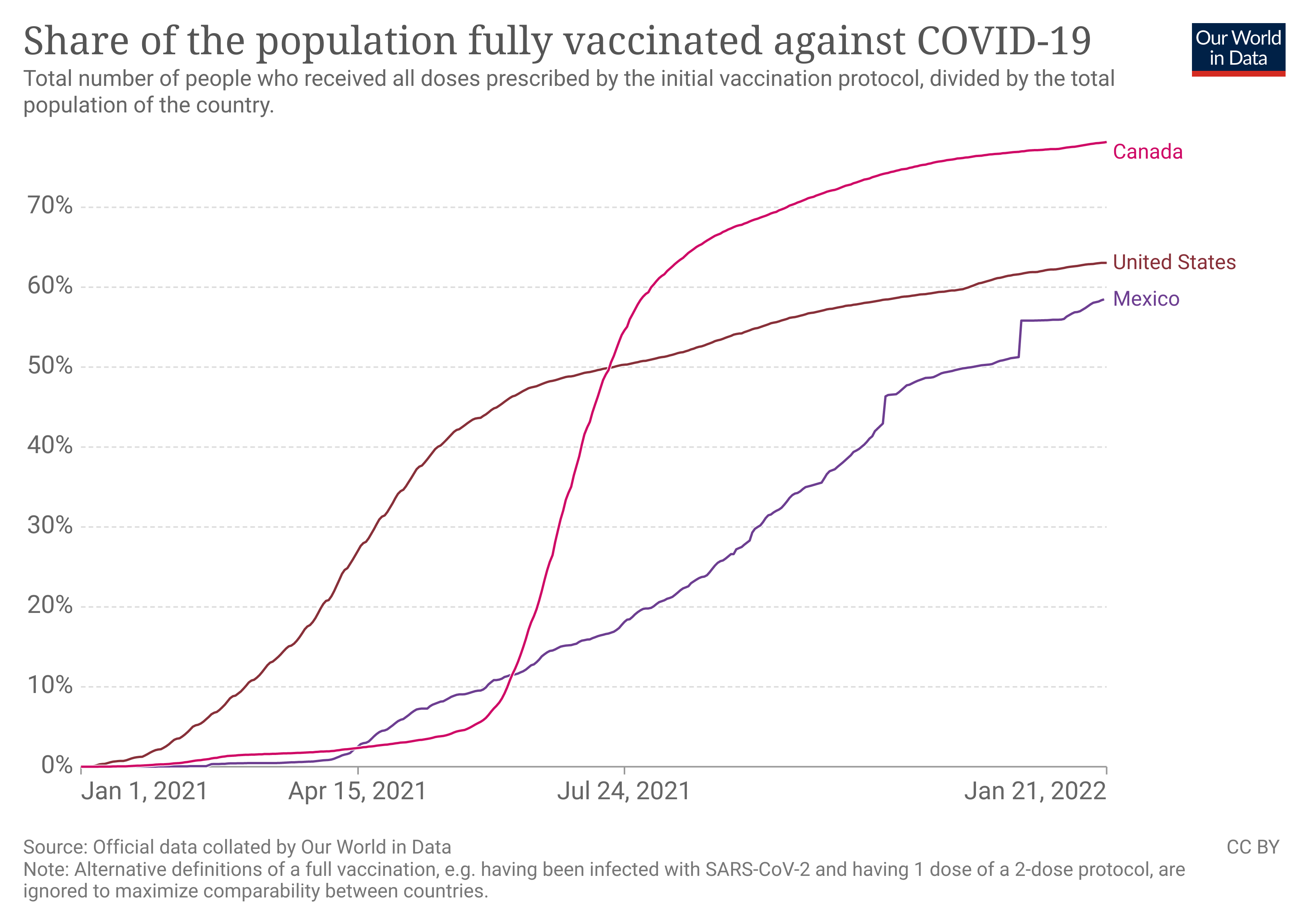 “Starting on January 22, 2022, the Department of Homeland Security will require that non-U.S. individuals entering the United States via land ports of entry or ferry terminals along our Northern and Southern borders be fully vaccinated against COVID-19 and be prepared to show related proof of vaccination,”