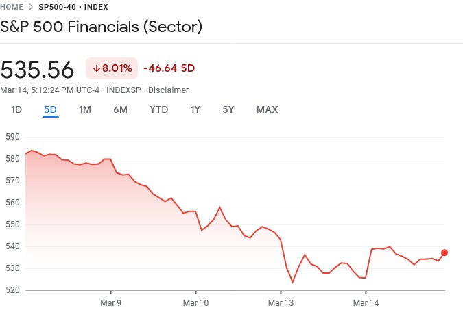 While Monday (March 13) was a stock market bloodbath, just one trading day later saw a stabilization and even recovery in the S&P 500 Financials Index.