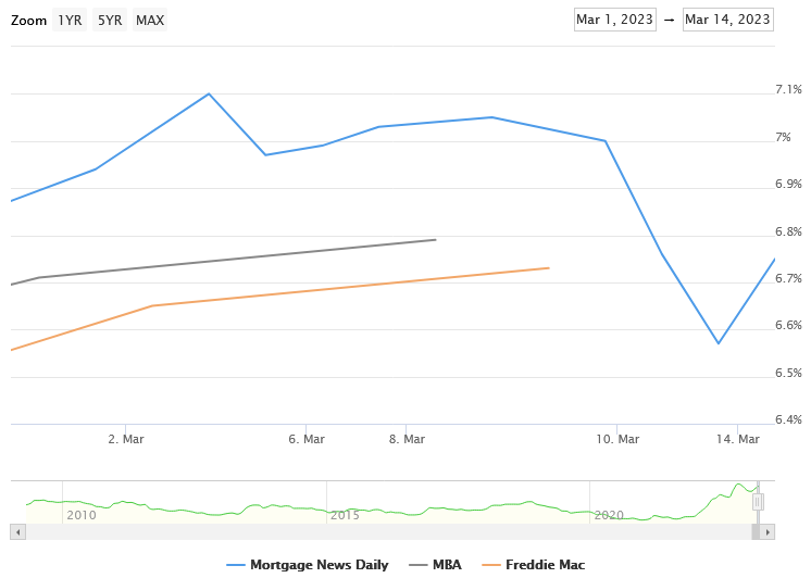 Even mortgage rates, which had plunged on Friday and again on Monday recovered somewhat, with the 30-Year mortgage rising to 6.75%.
