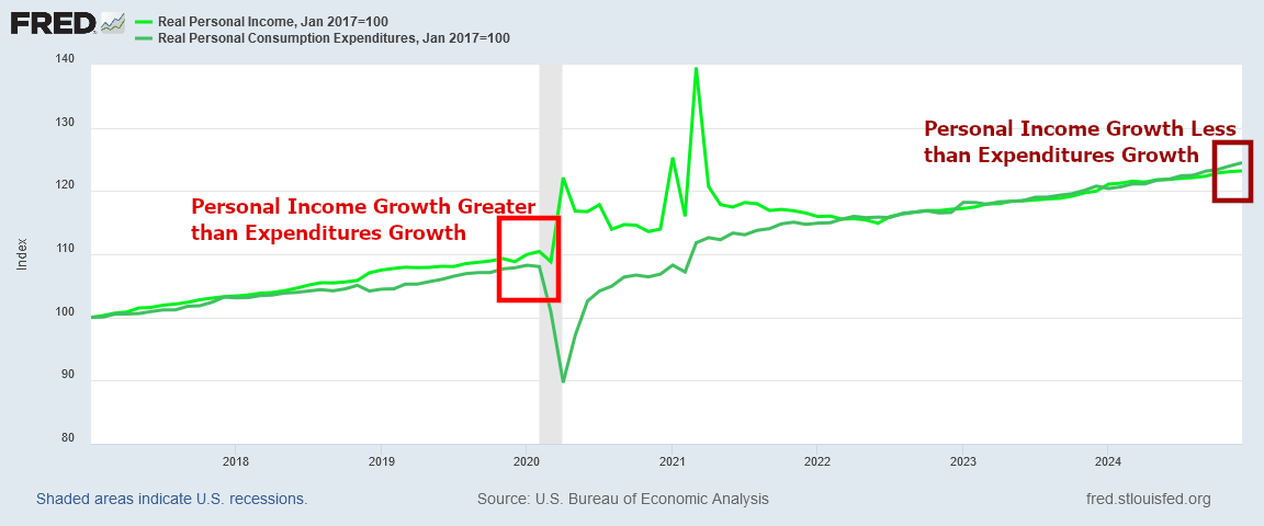 Consider the growth in Personal Income vs that of Personal Consumption Expenditures since the start of the first Trump Administration.