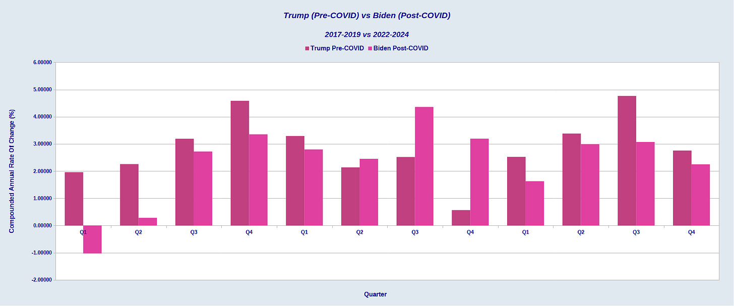 On a quarter by quarter basis, President Trump before the COVID lunacy turned in better economic results than Joe Biden did after the COVID lunacy.