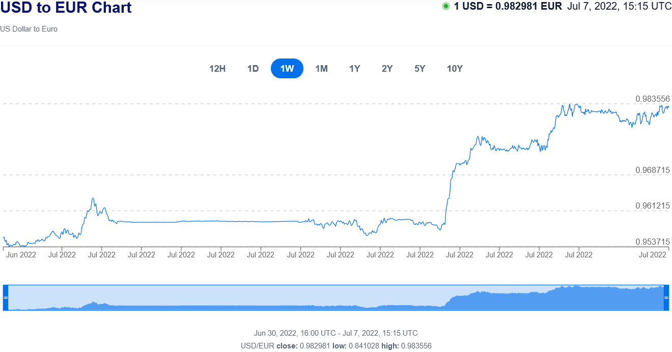 The currency’s downward spiral has been swift and brutal, given it was trading around $1.15 in February. Russia’s invasion of Ukraine has worsened the outlook for growth in the euro zone and pushed up the cost of its energy imports, while a string of increasingly-large Federal Reserve interest-rate hikes has supercharged the dollar.