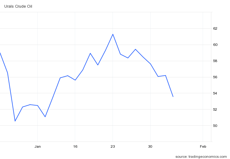 However, since I examined that particular issue, the reality of Urals crude pricing is that it has fallen significantly, approaching $53/Bbl as of Friday, February 3.