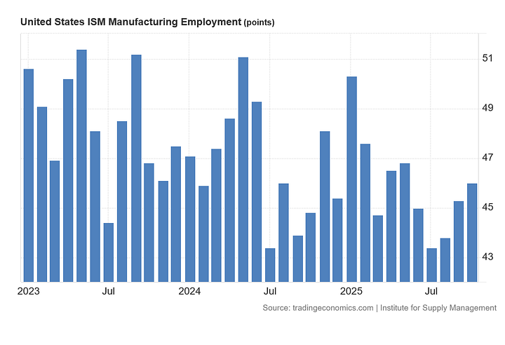 We see confirmation of the dysfunction in labor markets within the Institute for Supply Management’s Manufacturing Employment PMI and the Services Employment PMI, both of which have printed contraction—job loss—for the past several months.