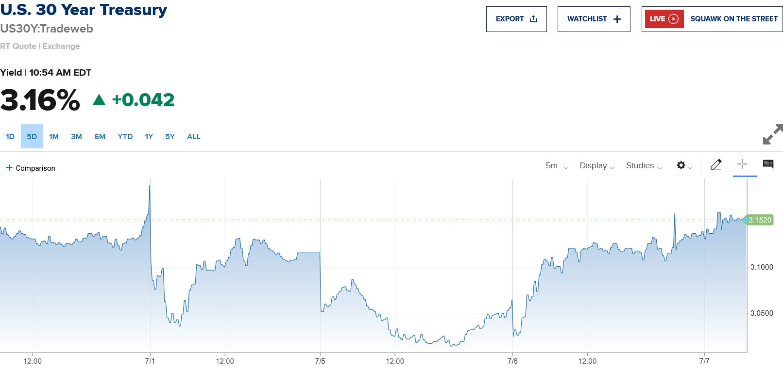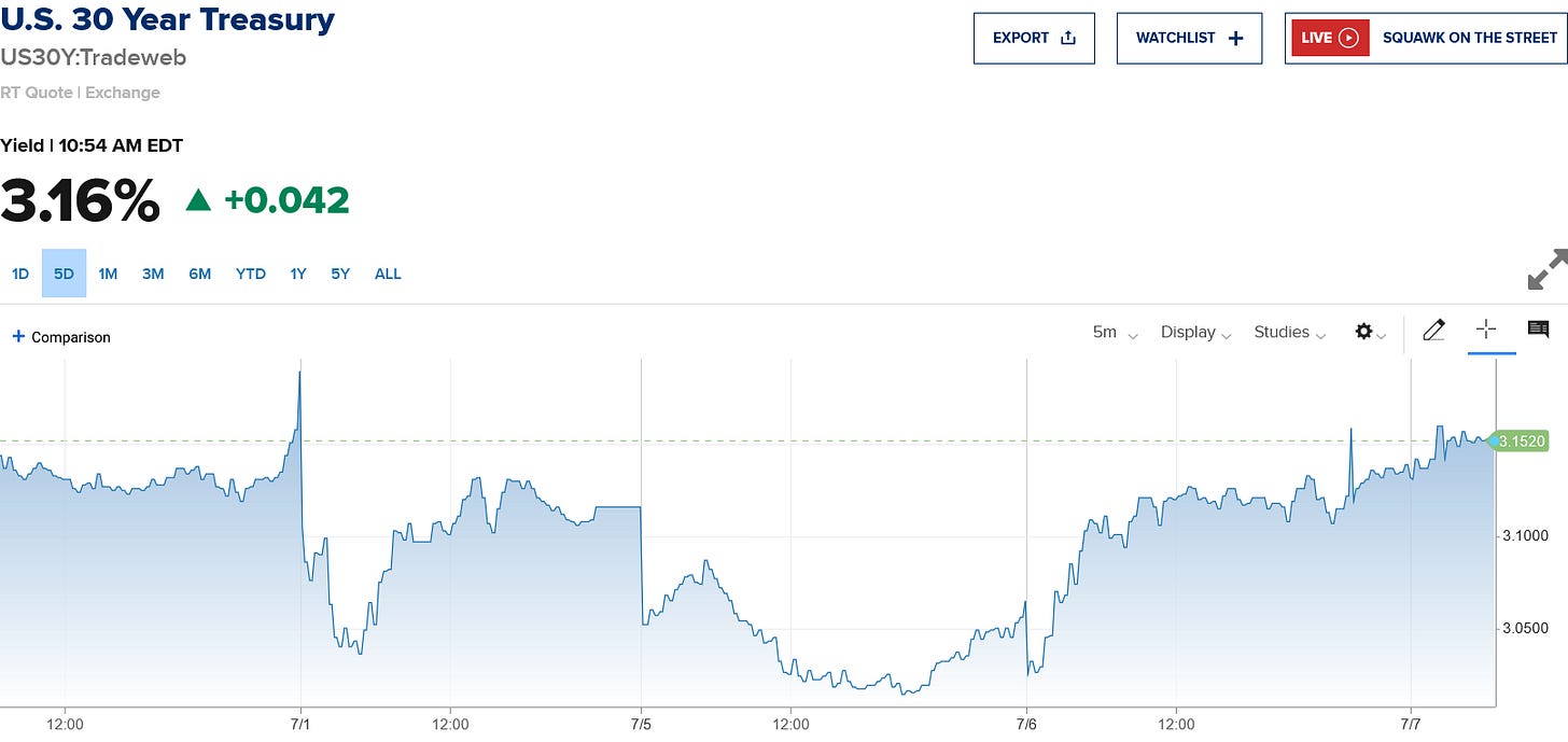 For the moment, the 30-Year yield is holding up against the 2-Year and the 5-Year, although the margin is thin and may get thinner by day's end.