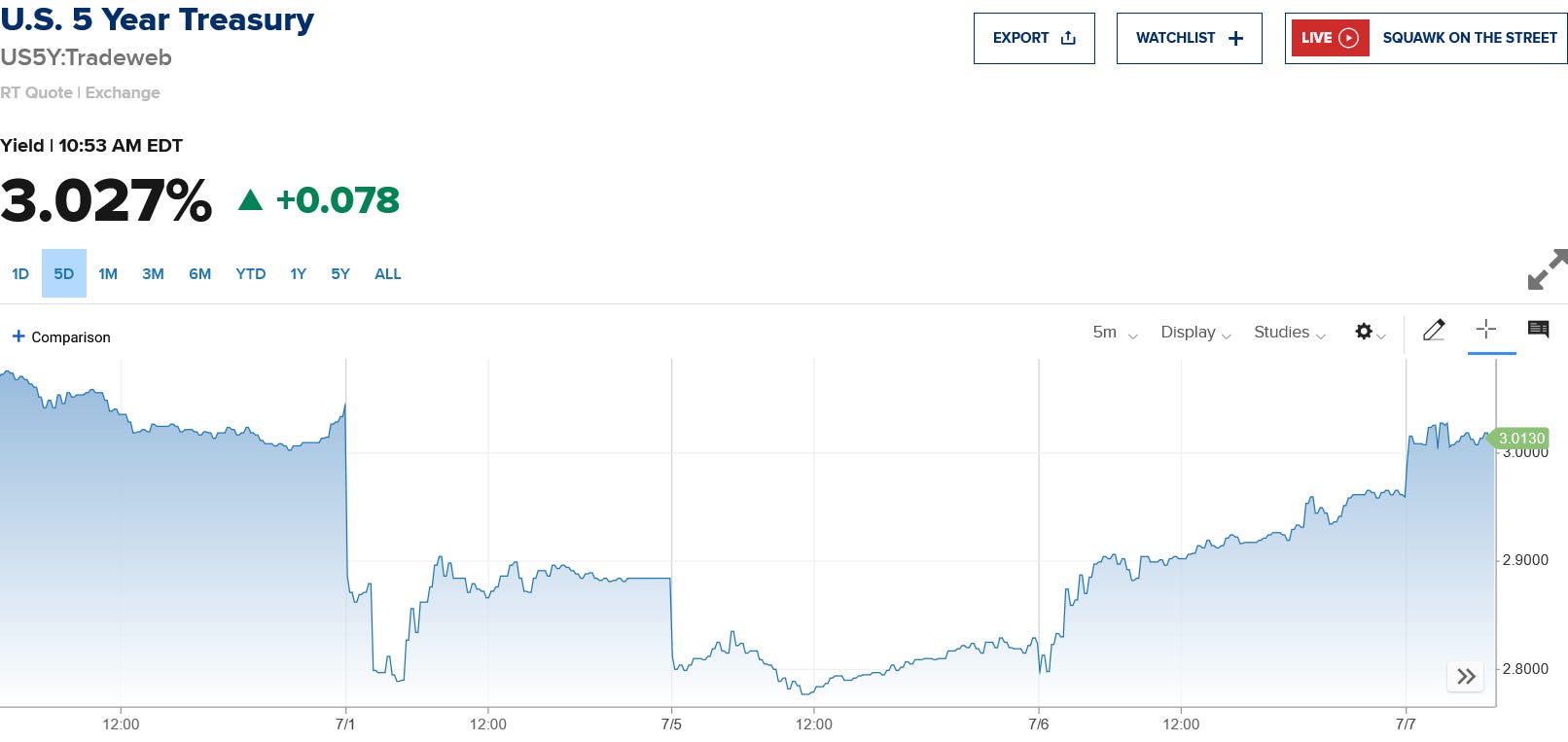 It is worth noting that the 5-Year yield remains above the 2-Year yield, while the 1-Year yield is the lowest (as it notionally should be).