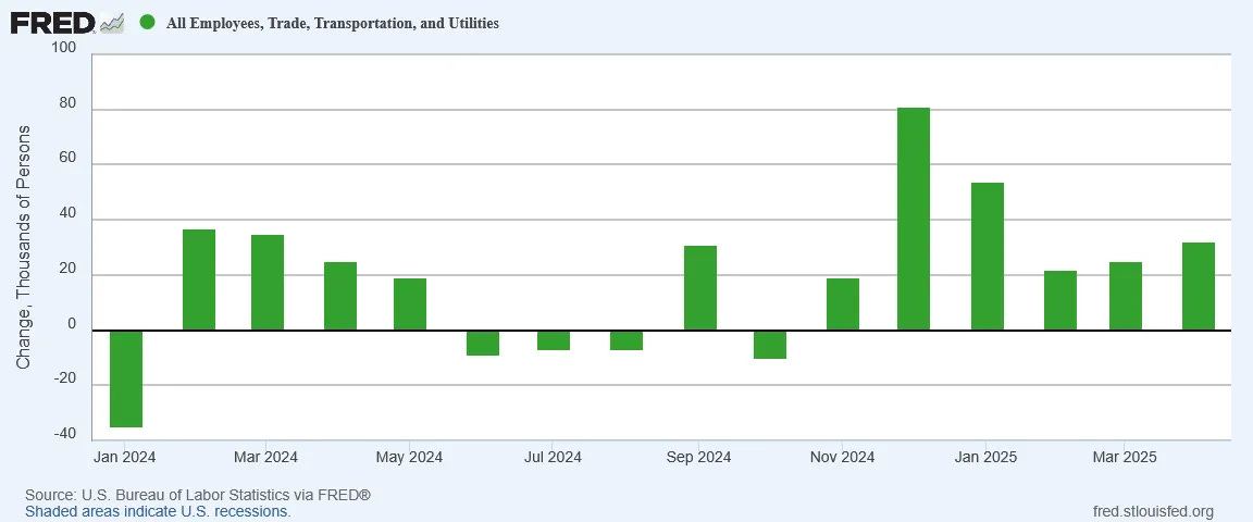 Net hiring in Trade, Transportation and Utilities surged in April.