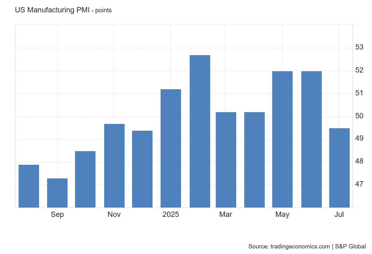 According to S&P Global’s July Manufacturing Purchasing Managers’ Index, manufacturing contracted significantly for the month.