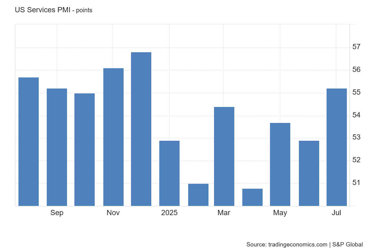 Despite the red flags surrounding manufacturing, S&P Global’s Services Purchasing Manager’s Index rose in July.