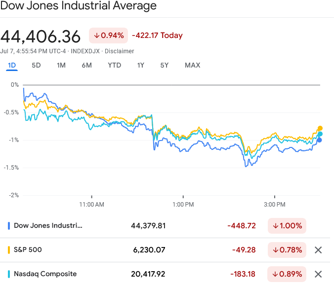 Trump's flexing today only spooked them further, with the Dow falling 1% on the day.