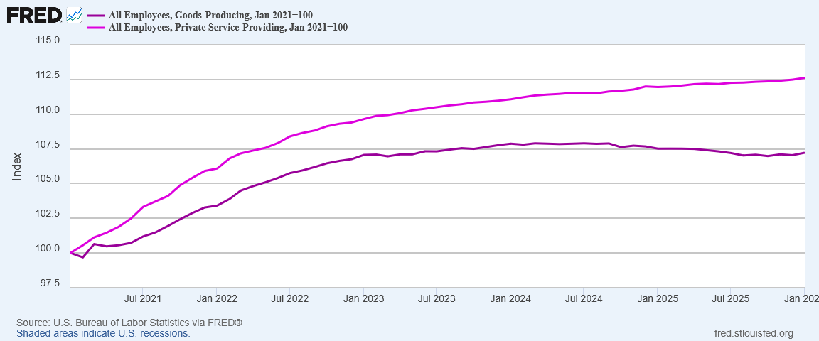 Nor does it help that goods producing employment declined beginning in late 2024.