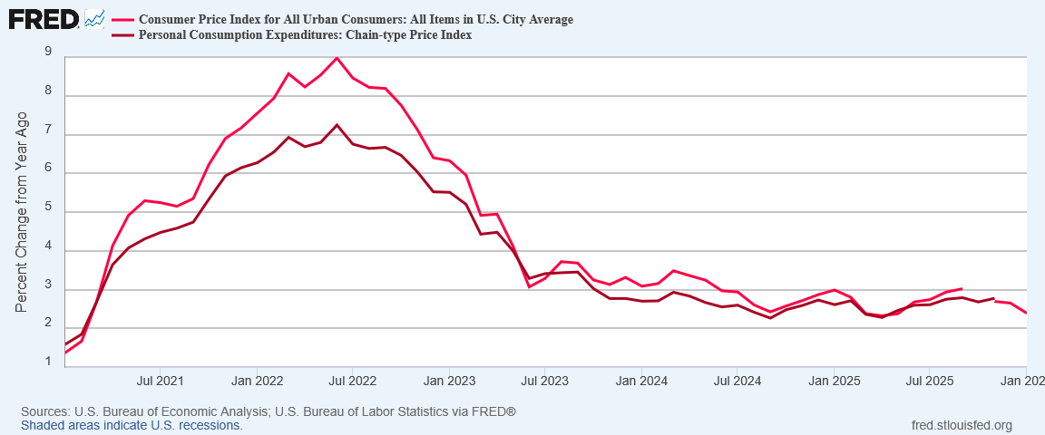 However, as I regularly discuss, there are two “official” inflation metrics that the government uses: the Consumer Price Index (CPI) and the Personal Consumption Expenditures Price Index (PCEPI). The CPI is the index calculated monthly by the Bureau of Labor Statistics, while the PCEPI is maintained by the Bureau of Economic Analysis. Of the two, the PCEPI tends to be the more conservative figure, printing a lower overall inflation rate at the height of the 2022 hyperinflation cycle.