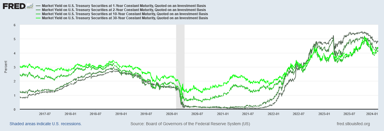 The drop to near zero interest rates across the yield curve was the consequence of Fed policy in the aftermath of the Pandemic Panic Recession.