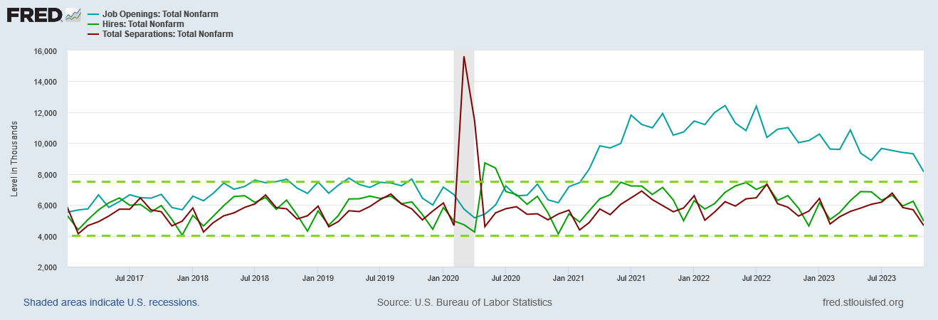 We also did not see under Trump the rise of “phantom” job openings which have failed to be reflected in increased hiring or decreased separation rates.