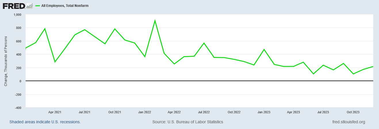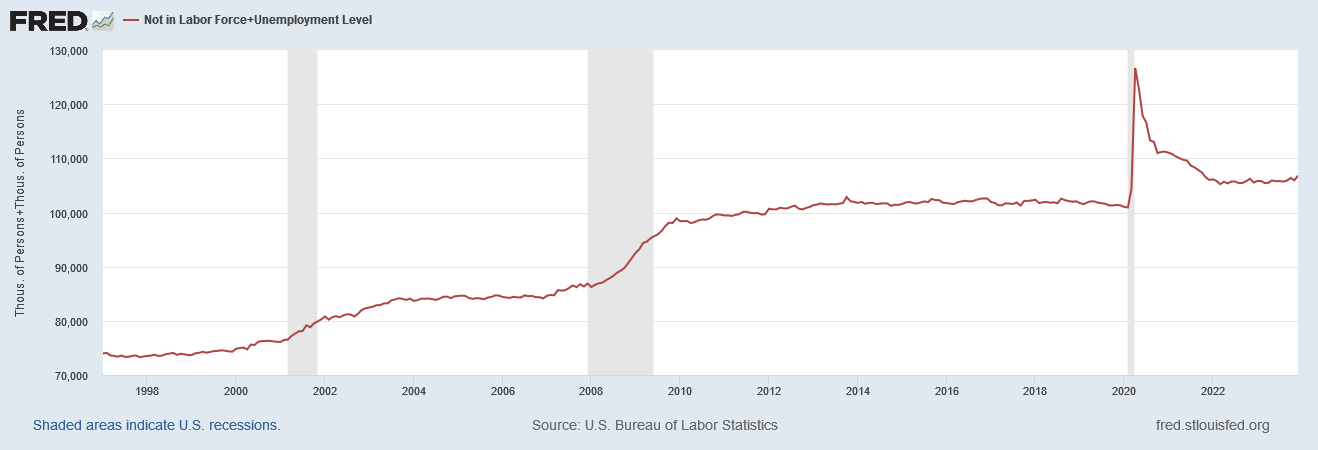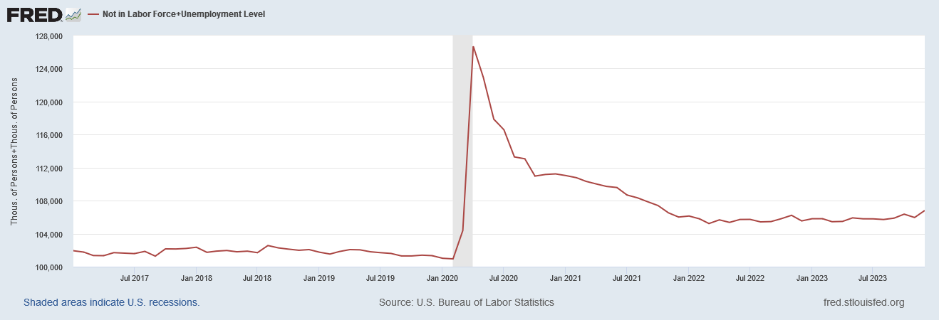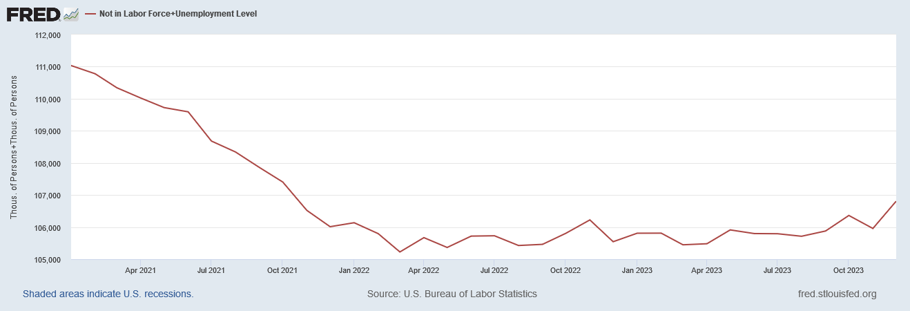 One of the main “tells” that the US has been in an extended recession has been the steadily rising number of people in the US who do not have a job, a rise that began in March of 2022.