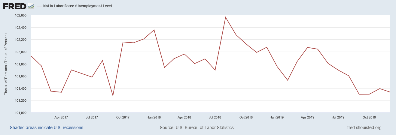When we examine the broad numbers of people without a job—both the technically “unemployed” as well as those counted as “not in the labor force”—the result is a similarly nuanced “win” for Donald Trump.