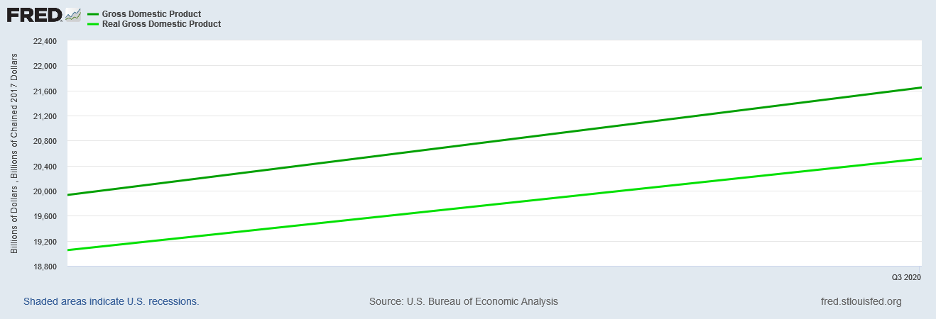 By comparison, the differential between nominal and real GDP from 2017 through 2019 was far more constant.
