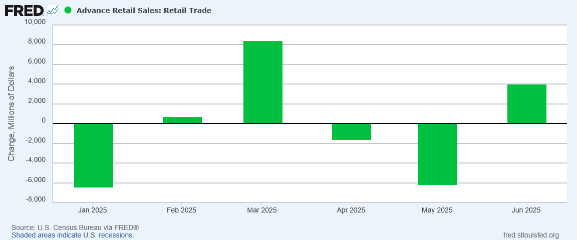 According to the US Census’ Advanced Monthly Sales data, retail sales rose some 0.6% in June.