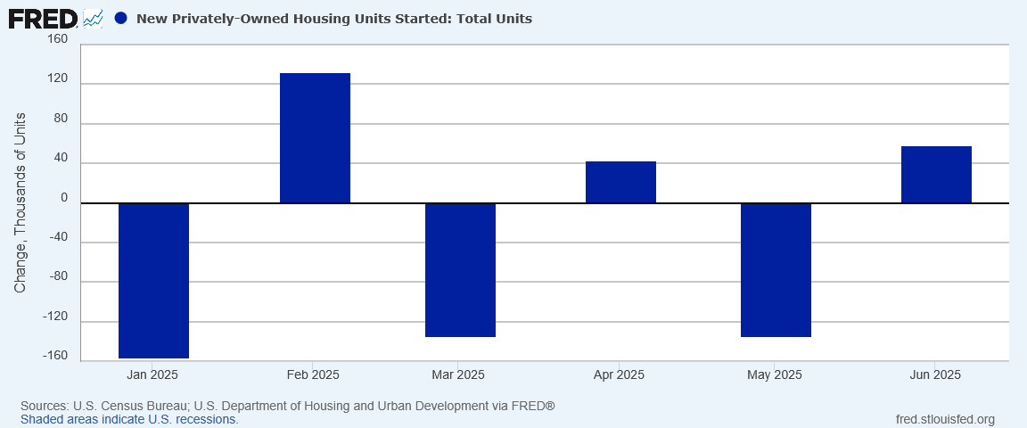 This coupled with the rise in June Housing Starts by 58,000 suggests that new home construction may be starting to pick up.