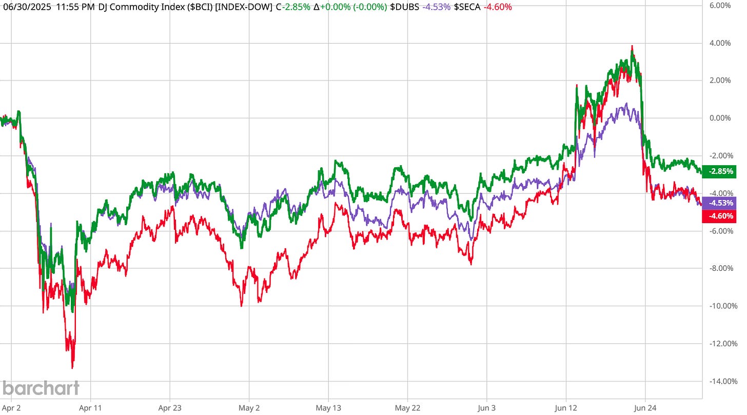 Energy and commodity prices have been moving largely horizontally since the end of the Twelve Day War, fluctuating up and down across a band of trading prices.