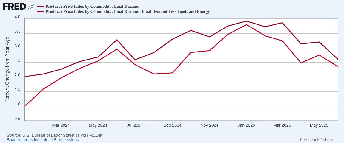 This has significance for July and August consumer price inflation data, as the PPI generally serves as a leading indicator for the CPI. Inflation that shows up in the PPI is likely to appear in the CPI within a month or two.