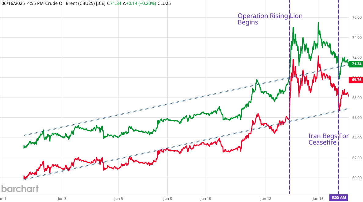 Even oil markets were beginning to see that the apocalyptic worst-case scenario was not the most likely outcome, having eased off the initial price surge triggered by Operation Rising Lion. With today’s reports of Iran seeking a ceasefire, oil prices eased even further.