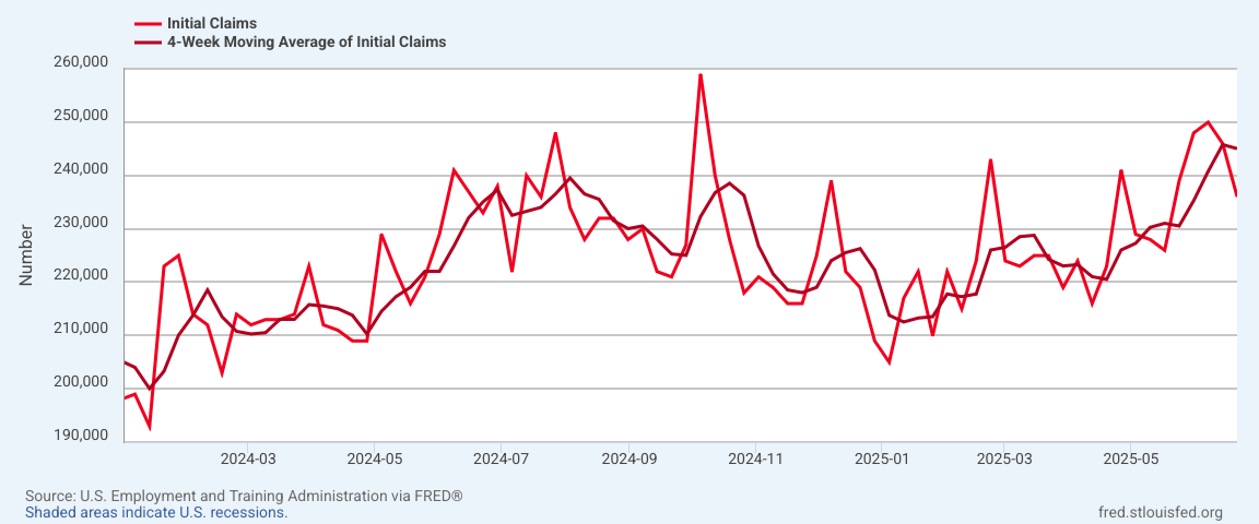 In the week ending June 21, the advance figure for seasonally adjusted initial claims was 236,000, a decrease of 10,000 from the previous week's revised level. The previous week's level was revised up by 1,000 from 245,000 to 246,000. The