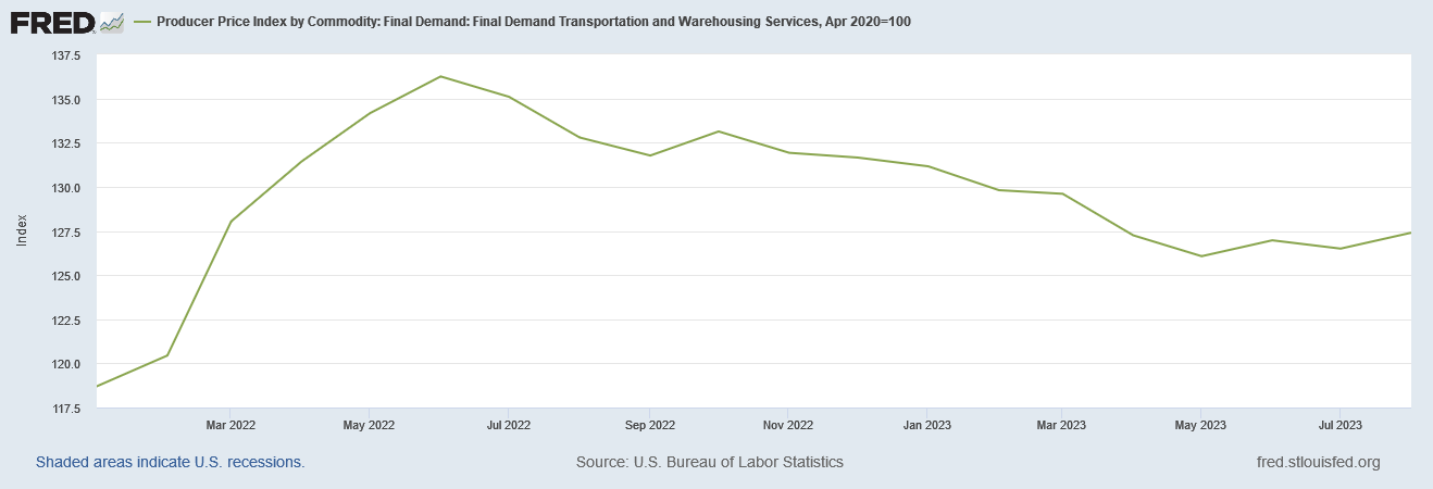 Even Transportation is experiencing lower levels of inflation than before, as evidenced by the Producer Price Index data.