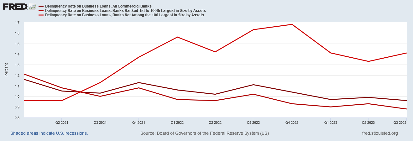 However, smaller banks are also seeing an increase in business loan delinquency.