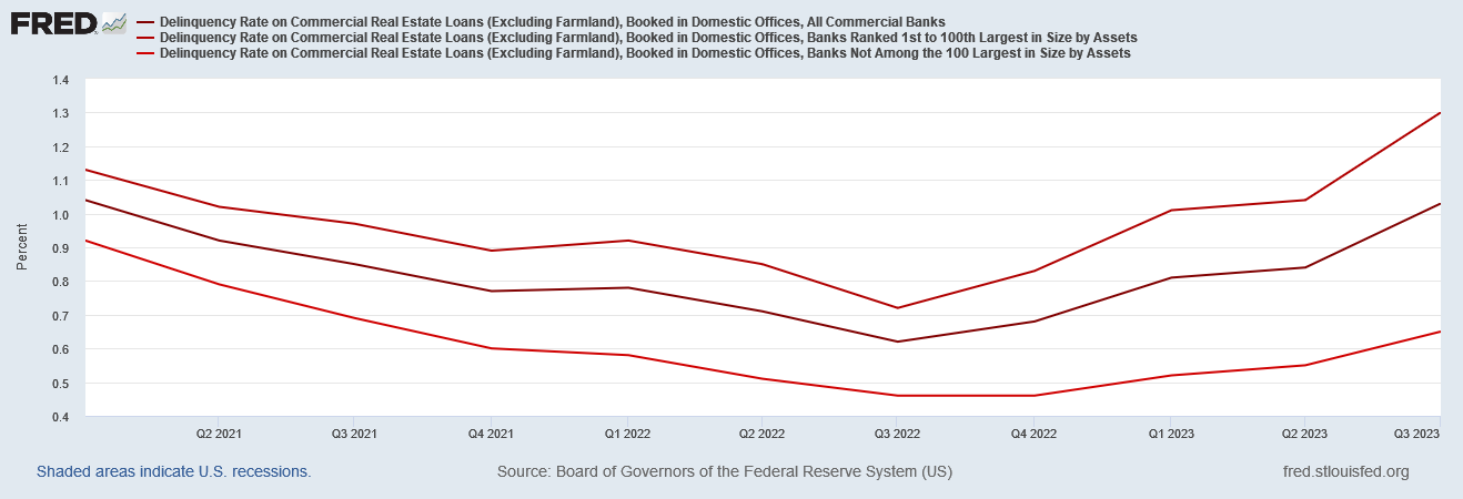 All banks are also seeing significant increases in commercial real estate loan delinquency.