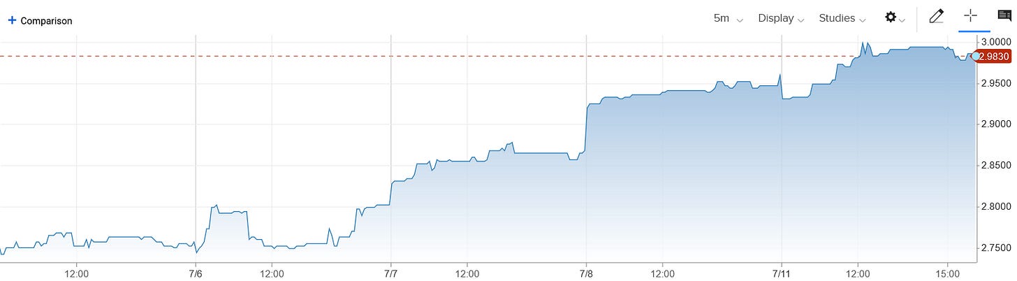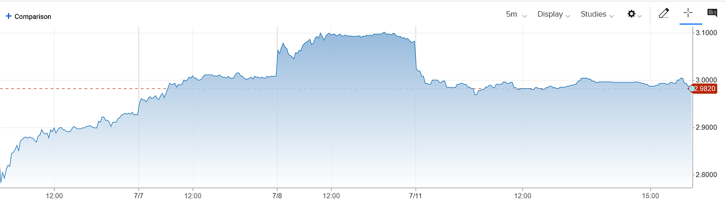 Bond yields on the day leave no room for doubt: both the US and the global economy is weak and getting weaker. The short end of the yield curve continued rising, as it has done even before last week’s jobs report, with the 1-Year Treasury yield at 2.983% coming close to inverting with the 10-Year Treasury yield at 2.987% (as a general rule, the shorter term maturities on Treasury bonds have lower yields than the longer term, and the inversion of this relationship is generally seen as an indicator that recession is happening or is about to happen)