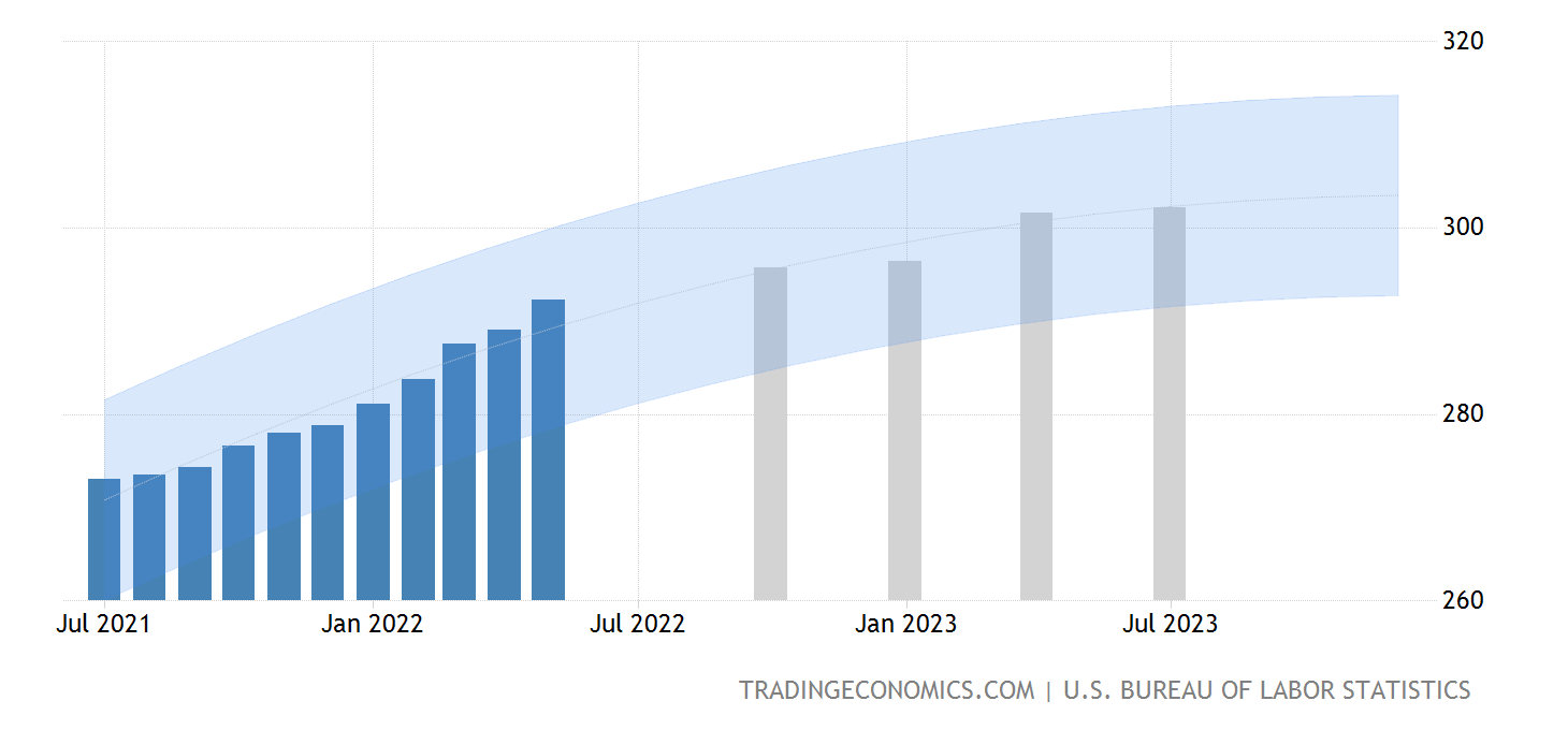 Financial data site Trading Economics is forecasting a rise in consumer price inflation from 8.6% to 8.8% year-on-year in the June CPI report.