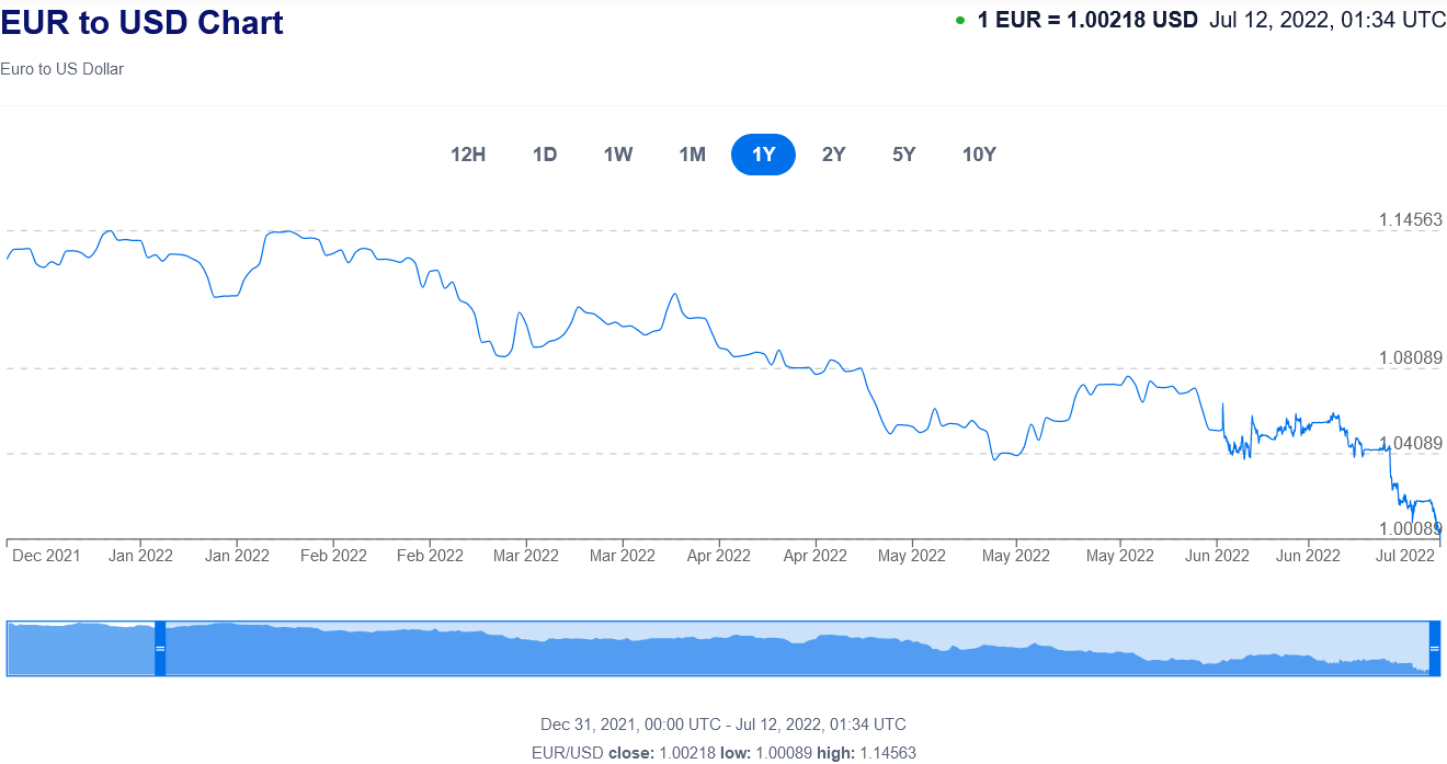Even with the US economy itself in a deteriorating position, Europe’s decline is stark enough to further push the euro towards parity with the US dollar, a trend which has been ongoing throughout the year.