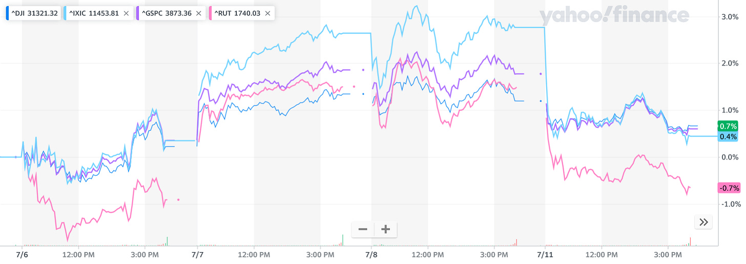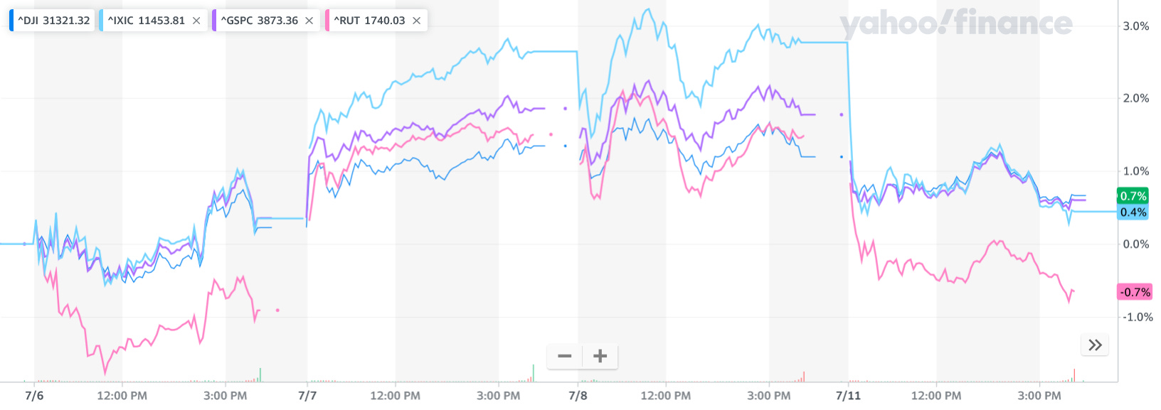 Despite the June Employment Situation Report using Lou Costello Labor Math to paper over a steep decline in the total numbers of people employed in order to tout the “creation” of some 372,000 jobs, Wall Street took the weekend to reflect on the implausibility of that report and apparently is coming to realize the Federal Reserve is making decisions based on faulty and/or inaccurate data. The result was a nose-dive at the opening bell across the board, with all major indices closing down for the day.