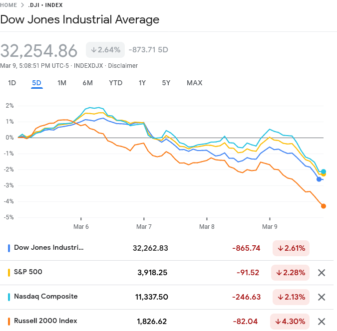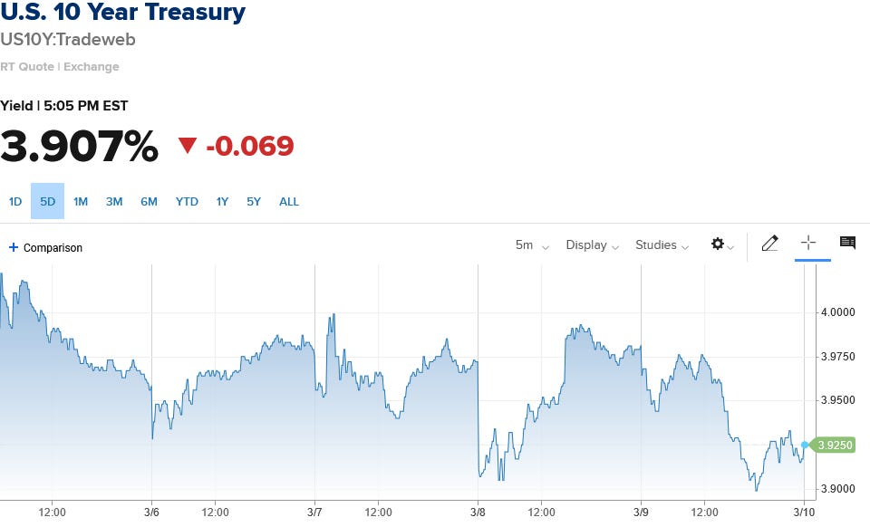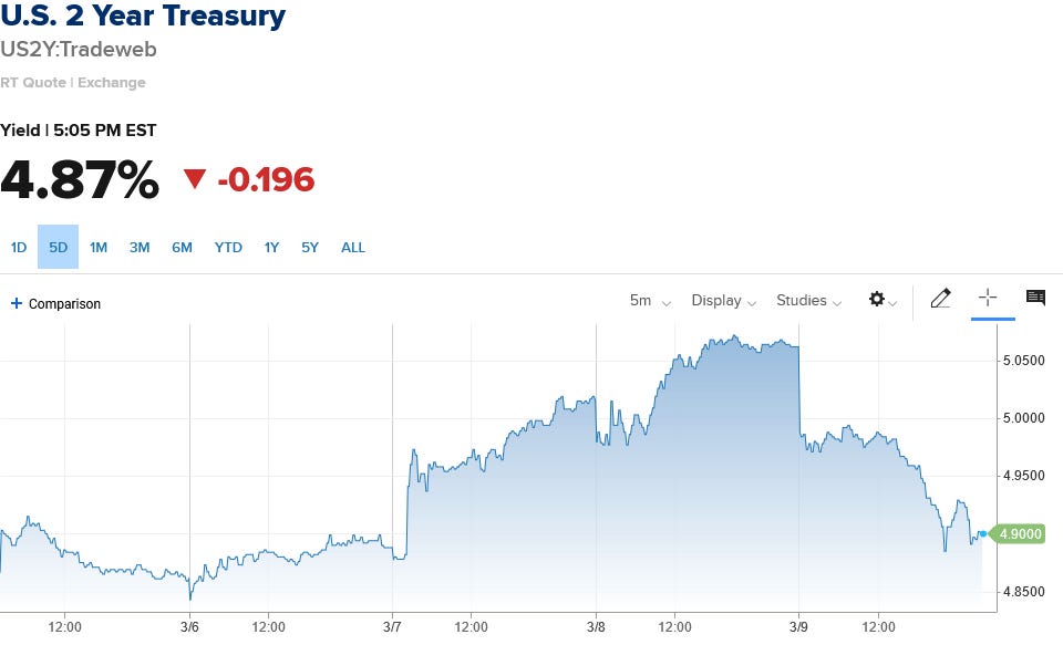 The 2-Year yield rose above 5% Tuesday and Wednesday, before falling all the way back to the same 4.8%-4.9% range it enjoyed on Monday (March 6).