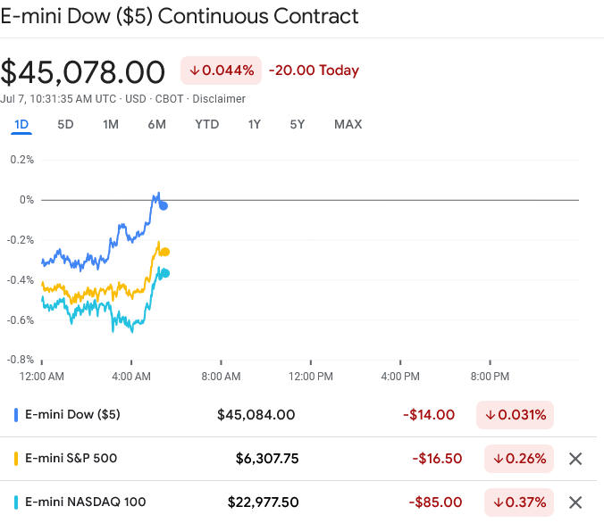 While the President’s Truth Social feed is filled with typically Trumpian expressions of self-congratulation (while unironically also expressing care, concern, and compassion for the victim’s of Texas’ Independence Day floods), Wall Street is starting the week in a far less celebratory mood.