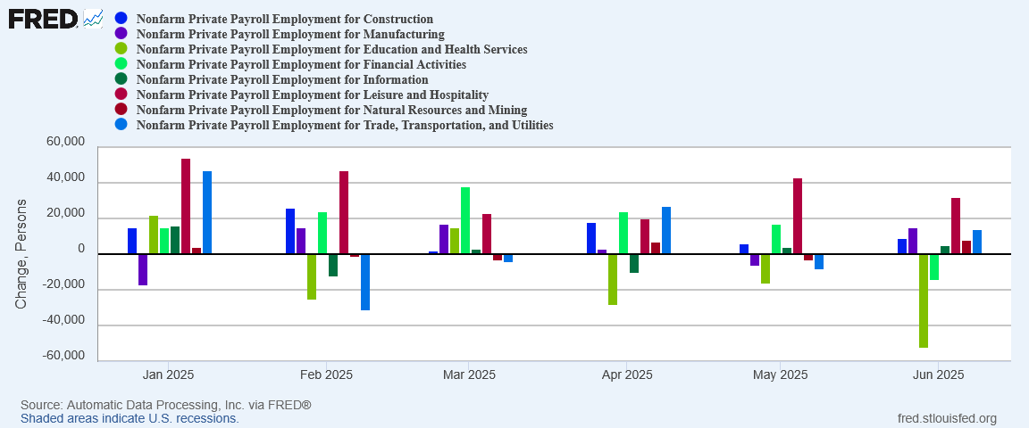 At a minimum, the ADP report points to continued Lou Costello Labor Math, as June’s job loss ostensibly occurred almost entirely within Education and Health Services.