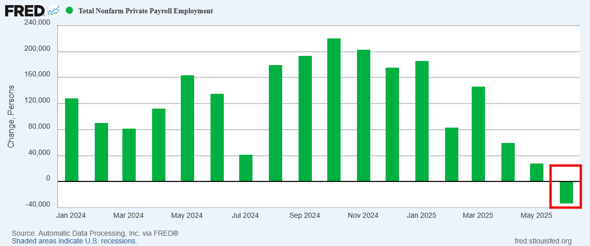 Not this time. ADP’s June data is significant all on its own, as the June National Employment Report shows America lost 33,000 jobs.