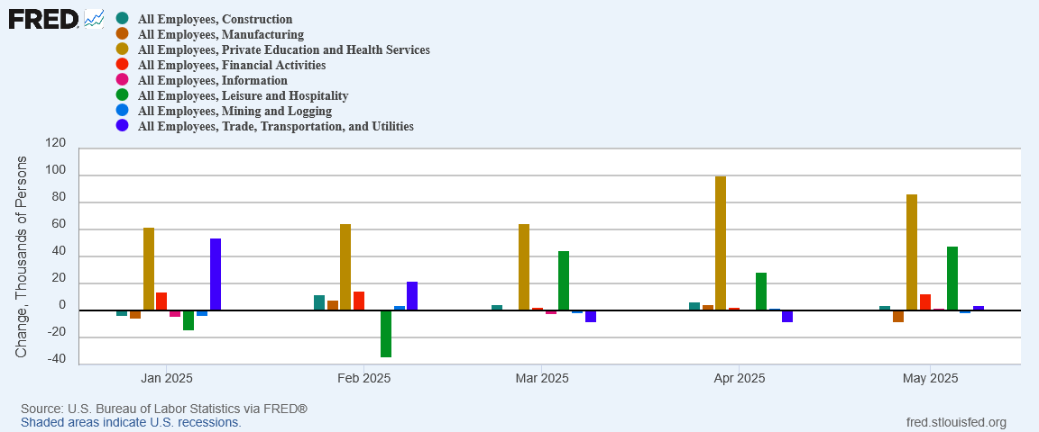 This is a complete rejection of the BLS jobs data. Education and private healthcare have been the employment sector that has shown the most growth since the start of 2025, according to the BLS.