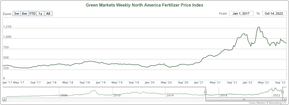 As U.S. farmers finish up fall harvest, their attention will turn to fertilizer applications. While fertilizer values have backed off the highs of early 2022, they still remain well above historical norms. Data also indicates that prices may surge even higher in response to strong farmer demand in the coming months.