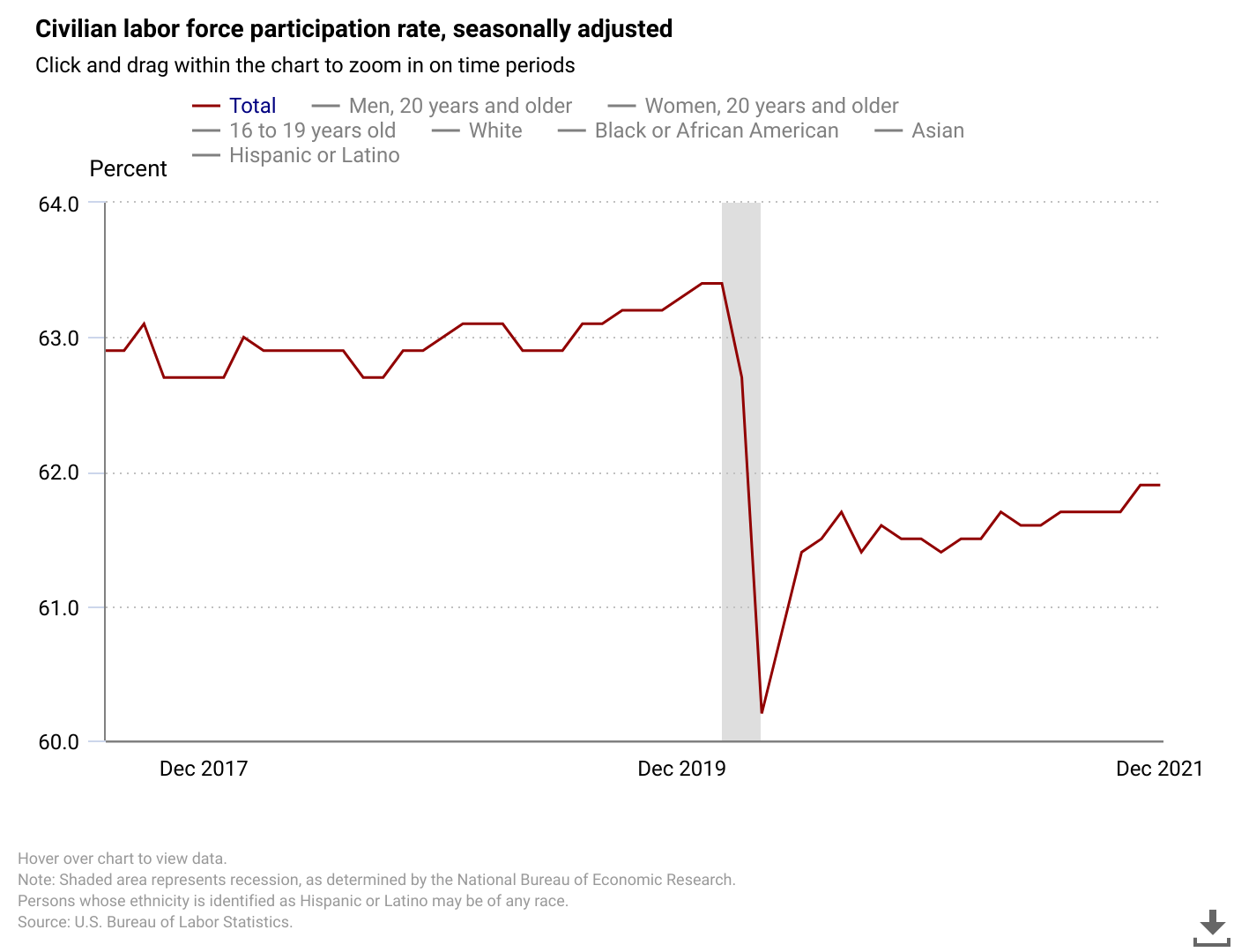 The labor participation rate seems to confirm this, as it remained unchanged at 61.9% (November's rate was revised up from 61.8%).