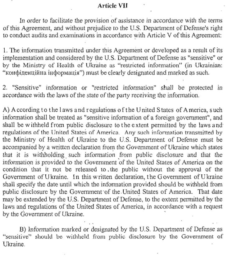 What was Ukraine doing with its stores of dangerous pathogens from 1993 to 2005? Why would at least some part of whatever it had been doing warrant being considered classified information?