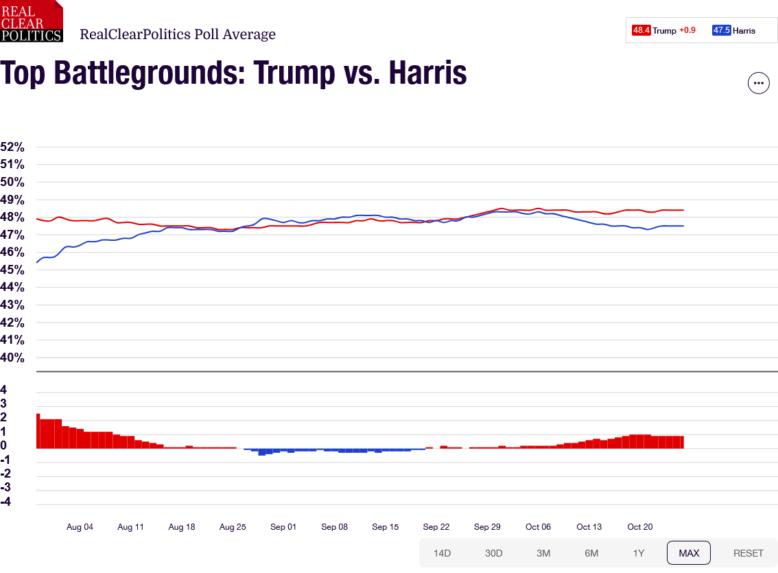 Nor is this a new twist. She has been sinking steadily in the battleground states throughout October.