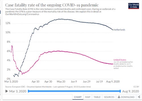 While the Netherlands does have a higher Case Fatality Rate than the United States, the trend and trajectory of their CCPVirus fatalities largely follows that of the US, indicating that masks indeed play no role in virus mitigation.