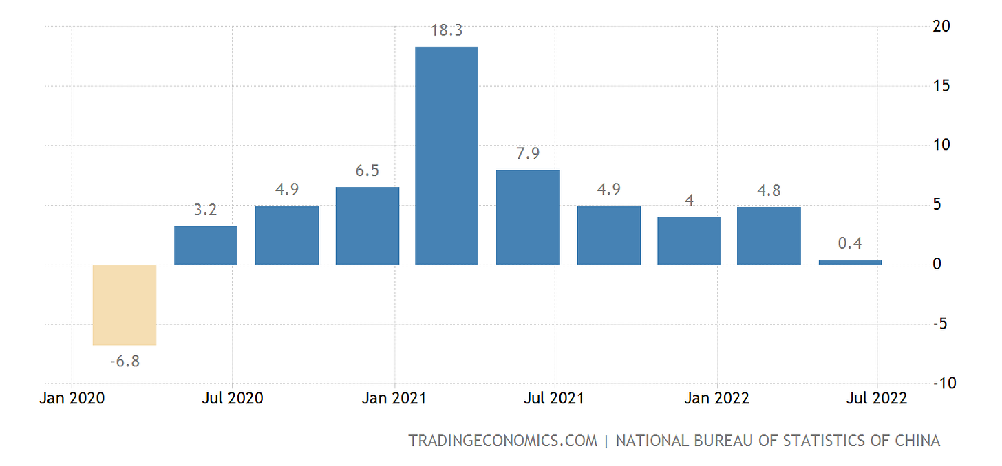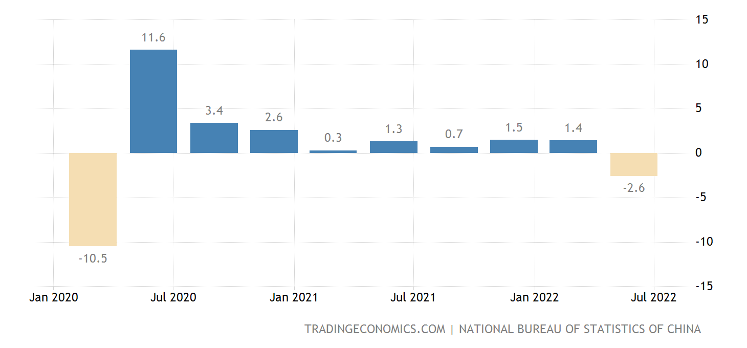 During the second quarter, China’s GDP actually contracted by 2.6%, the first quarterly decline since that first quarter of 2020.