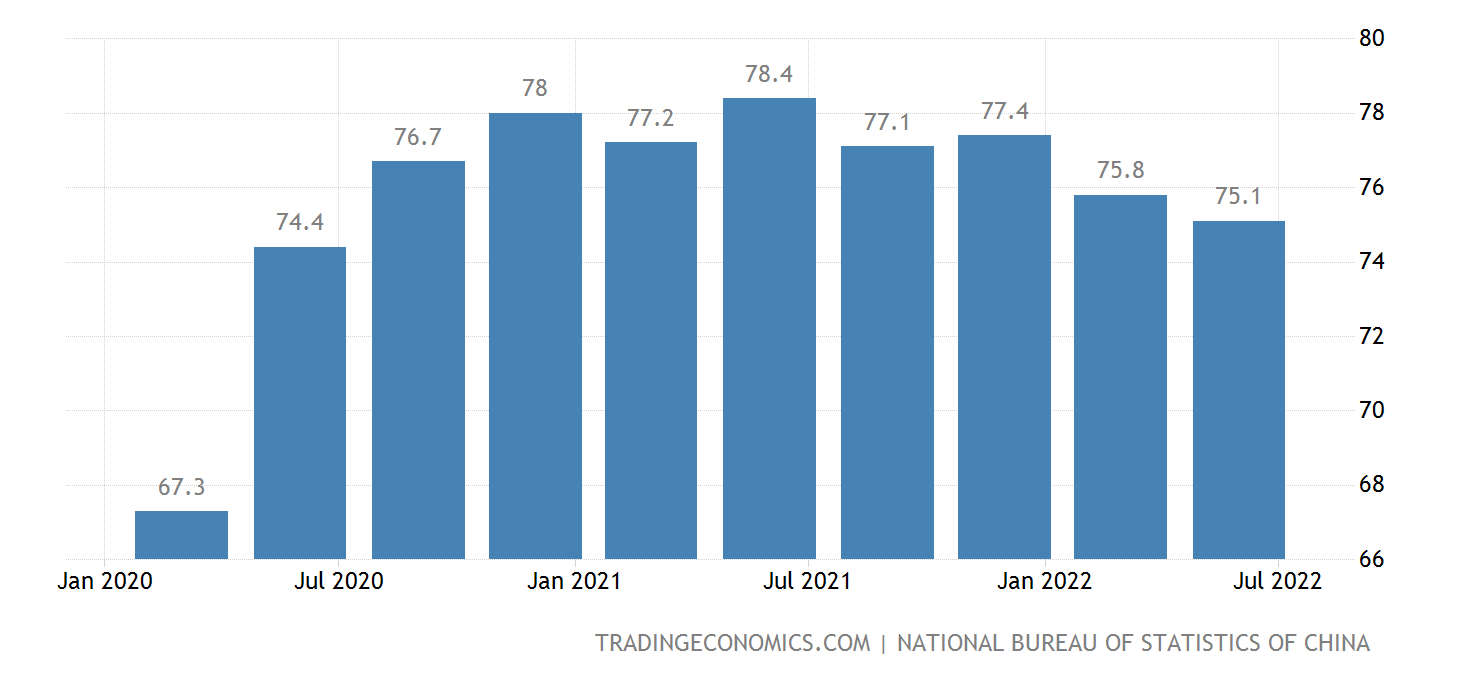 Industrial capacity utilization declined during the second quarter, the weakest performance since the second quarter of 2020, just as China was emerging from its first series of lockdowns.