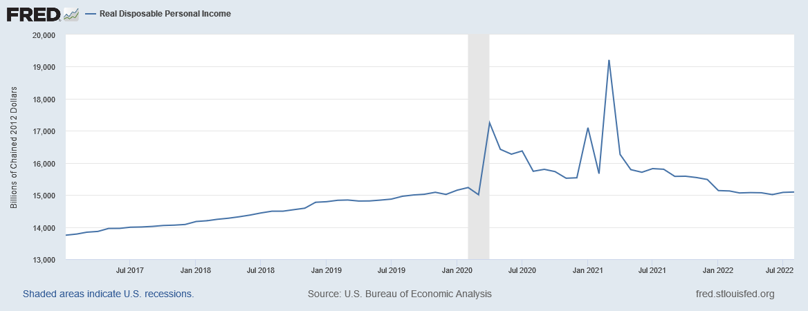 How can consumers whose real disposable income has been trending down since mid-2021 be “resilient” if staring an employment apocalypse squarely in the face?