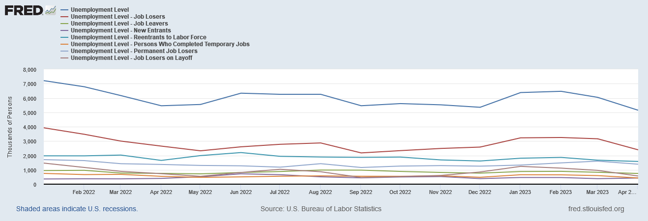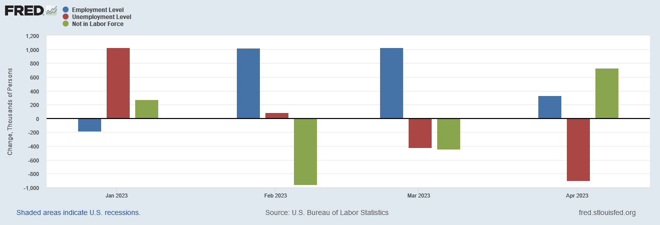 That the number of unemployed on an unadjusted basis was lower in April than it was this past December is also a plus. It’s good that people are going back to work.