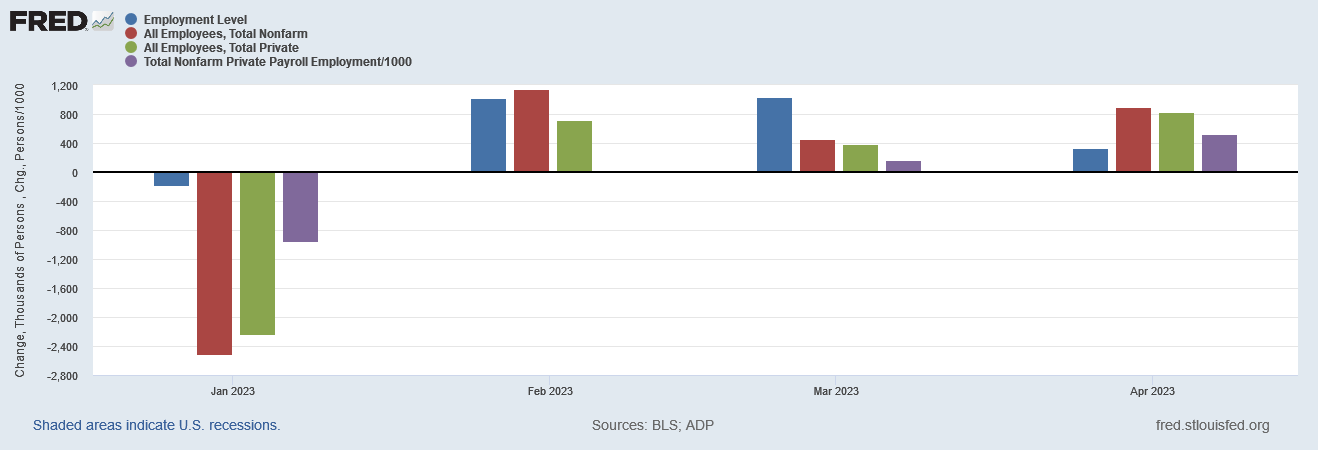 If those numbers are accurate, the April report is quite good. Even more encouraging is that they are not that far removed from Wednesday’s ADP National Employment Report for April.