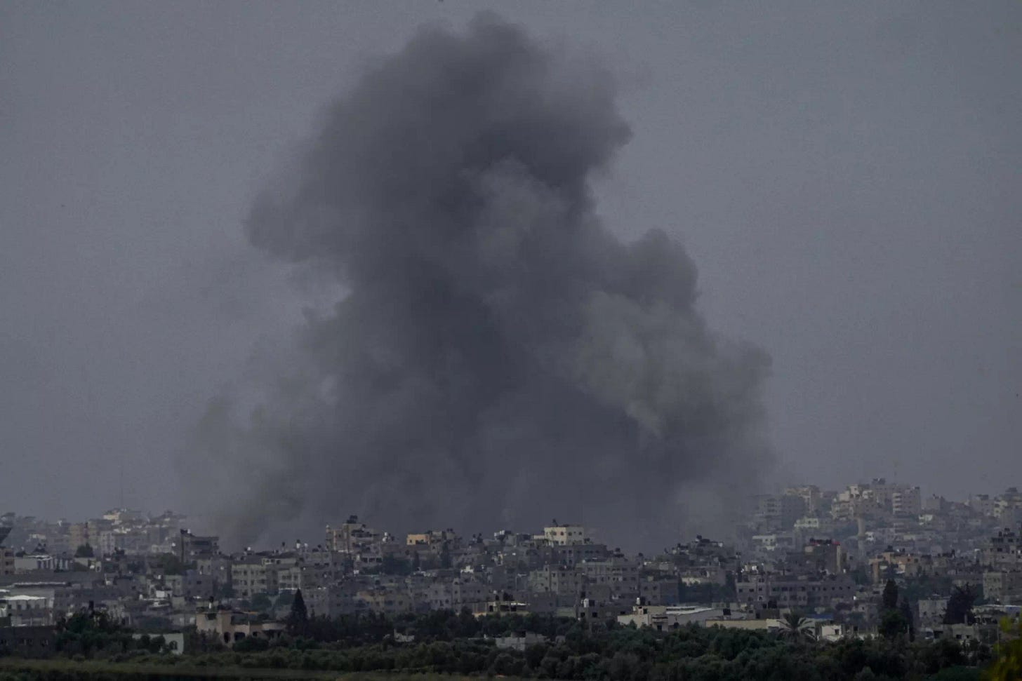 The caption on the photo reads: “Smoke rises above the Gaza Strip on Tuesday following an Israeli airstrike.”